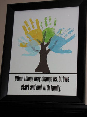 Make a Tree out of brown construction paper and have all of your kids add a hand print for each child (or multiple prints). I love the saying! You can print this out or buy letter stickers and make the saying.